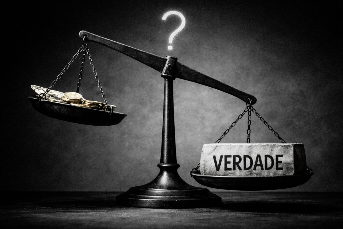 O risco moral do Sistema Judiciário monetarizado e o dilema ético da advocacia que normaliza a mentira. O dinheiro não pode pesar mais do que a verdade na atuação de um artífice do Direito — nem na consciência de um magistrado justo, que tem o dever de separar a verdade dos interesses monetaristas daqueles que pretendem comprar o veredito.